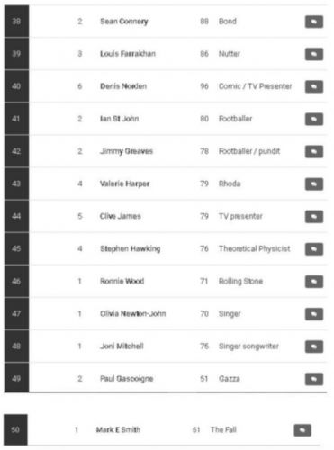 MARK E. SMITH BU LİSTEDEYDİ; Adeta felaket tellallığı yapan site, Spartaküs gibi karakterlere hayat vermiş ünlü oyuncu Kirk Douglas, oyuncu-aktör Newton-John, Rolling Stones’un efsane isimlerinden Ronnie Wood gibi isimlerin de bu sene hayatını kaybetmesini bekliyor.