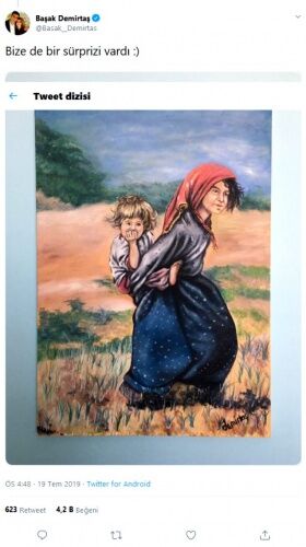Hepinize çok selamları vardı" notunu düştü. Demirtaş bu paylaşımından sonra "Bize de bir sürprizi vardı :)" diyerek, Selahattin Demirtaş'ın çizdiği yeni resmi paylaştı.