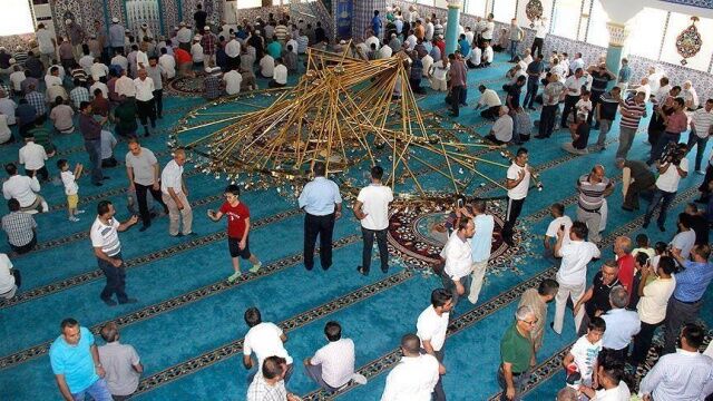 Dünya Ticaret Merkezi yanında bulunan Ahmet ve Ayşe İnci Cami’nde, vaaz esnasında, cami cemaatinin üzerine avize düştü