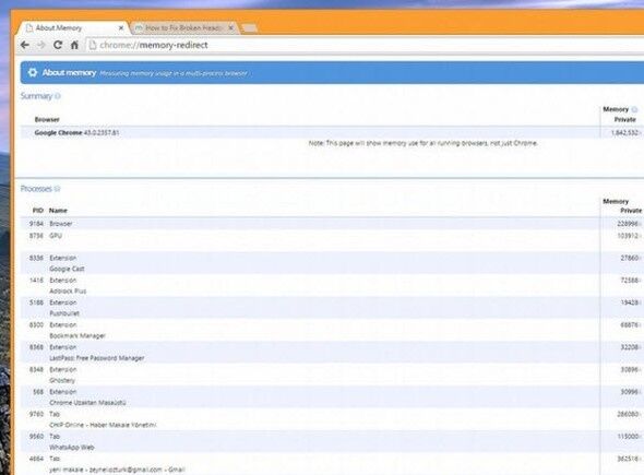 Chrome’un sekmeleri, uzantıları ve eklentileri ne kadar RAM kullanıyor? about:memory komutuyla öğrenebilirsiniz.