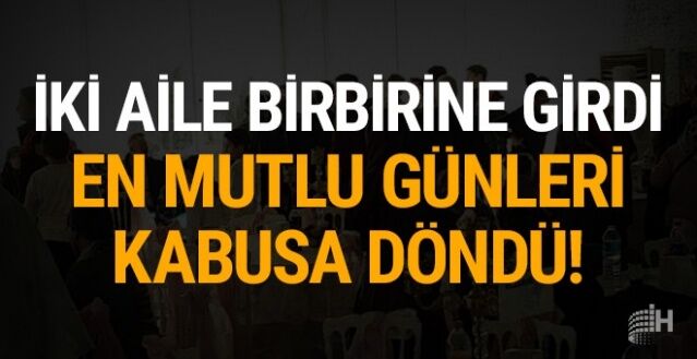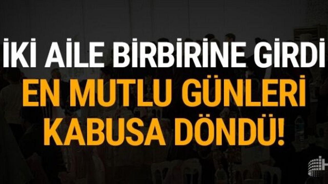 Gelin ve damadın diğer aile bireylerinin de dahil olduğu tartışma kavgaya dönüştü. Tabakların havada uçuştuğu kavgada 7 kişi yaralandı.