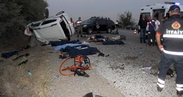 Hafif ticari araç içerisindeki 8 kişiden 7’si olay yerinde hayatını kaybetti. Adıyaman’ın Gölbaşı İlçesi Karaburun Köyü çıkışında meydana gelen kaza yeri kan gölüne döndü.