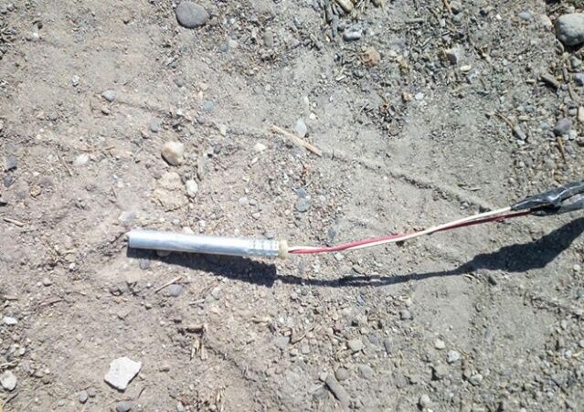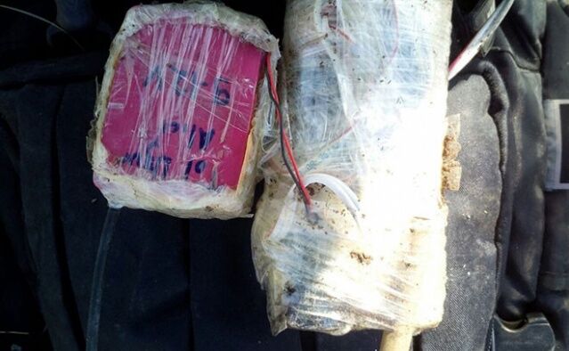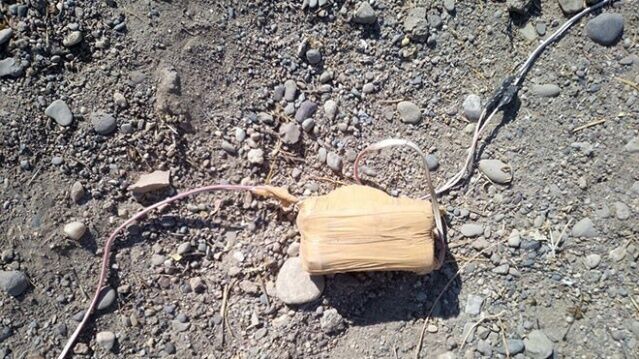 Tepe Mezarlığı’na giden stabilize yol üzerinde 2 adet 120 kg’lık jelikan bidon içerisinde 240 kg amonyum nitrat ile hazırlanmış EYP,