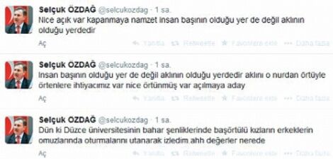 eğlencelerde başörtülü kızların erkeklerin omuzlarında oturmalarından şikayet etti.“AKLINI O NURDAN ÖRTÜYLE ÖRTENLERE…” AK Parti Manisa Milletvekili Selçuk Özdağ sosyal medya hesabından
