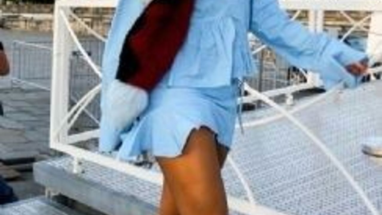 Paris'in Şanselize Caddesi'ndeki Concorde Meydanı'nda görüntülenen 28 yaşındaki şarkıcı, bebek mavisi kıyafetiyle beğeni topladı.