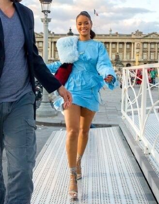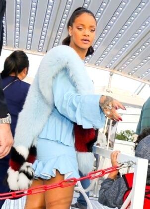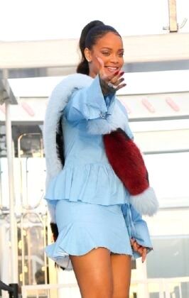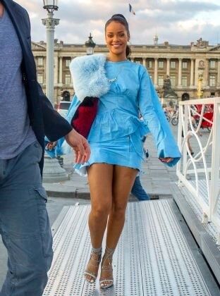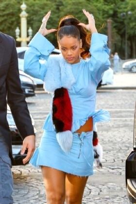Ünlü şarkıcı Rihanna, dünya turnesi kapsamında geldiği Fransa'nın Paris kentinde bebek mavisi kıyafetiyle beğeni topladı. Yüksek topuklu stiletto tipi ayakkabıları ve sade makyajıyla kıyafetini tamamlayan şarkıcının görünümünde en dikkat çekici ayrıntı omzundaki kürk oldu.
