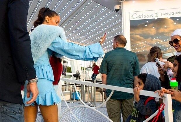 Rihanna, Paris sokaklarında sevgi gösterisinde bulunan hayranlarını selamladı.