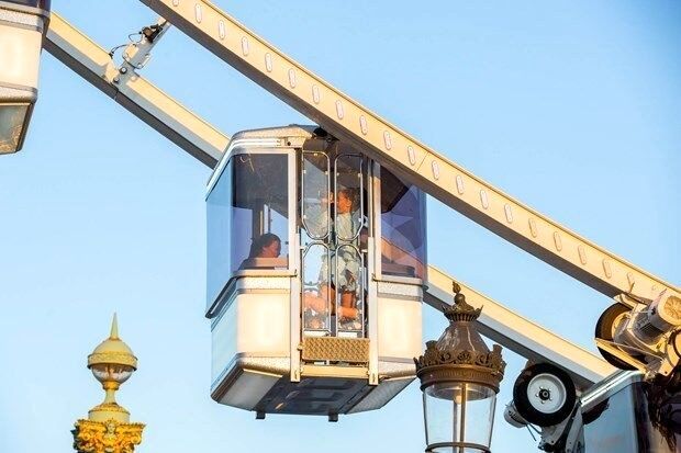Şarkıcı, şeffaf kabinli dönme dolaba binerek Paris şehir manzarasını izledi.