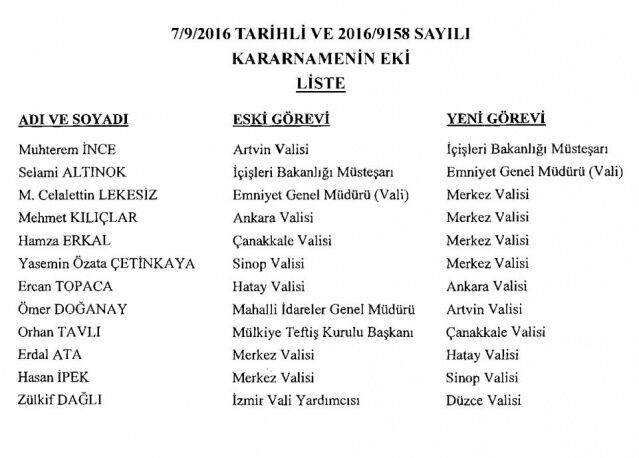 Uzun zamandır beklenen valiler ve emniyet müdürleri atamaları yapıldı. Resmi gazetenin bugünkü mükerrer sayısında yayınlanan emniyet müdürleri ve valilerin atanmasına ilişkin kararnamelerle