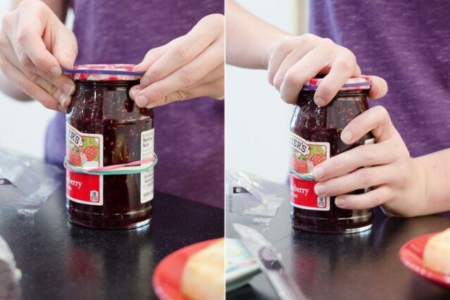 Sıkışmış kavanoz kapaklarını lastik bantlar kullanarak kolayca açın