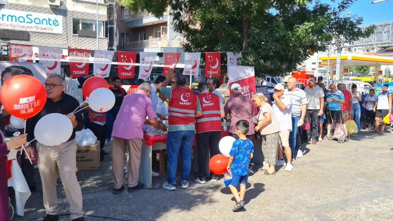 İzmir'in Buca ilçesinde Şirinyer Parkı'nda yıldönümü dolayısıyla stant kuran Saadet Partisi Buca İlçe Başkanlığı, vatandaşlra aşure ikramında bulundu.