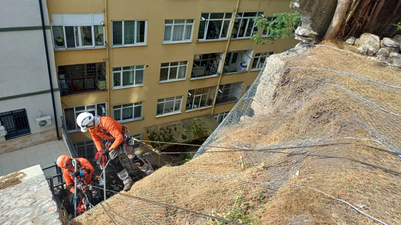 Kocaeli Büyükşehir Belediyesi, İzmit Akçakoca Mahallesi’nde can ve mal güvenliğini tehdit eden riskli bir alanda kapsamlı bir çalışmayı tamamladı. Eğimli arazi üzerinde, toprak ve taşların düşerek çevreye zarar vermesini önlemek amacıyla, çelik güçlendirme halatlarıyla desteklenen dayanıklı bir çelik ağ sistemi kuruldu.KOCAELİ (İGFA) - Geçen yıl İzmit İlçe Milli Eğitim Müdürlüğü ve İzmit Halk Eğitim Merkezi binasının bulunduğu bölgede risk oluşturan istinat duvarı yıkılarak, yerine daha sağlam ve güvenli bir duvar inşa edildi. Sırrı Paşa Caddesi üzerindeki 5 metre yüksekliğindeki istinat duvarı, taş pere kaplama ile hem estetik hem de yapısal açıdan güçlendirildi.