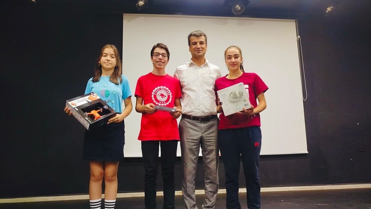 Dereceye giren öğrencilere ödülleri, Halk Eğitim Merkezi konferans salonunda düzenlenen törenle takdim edildi.