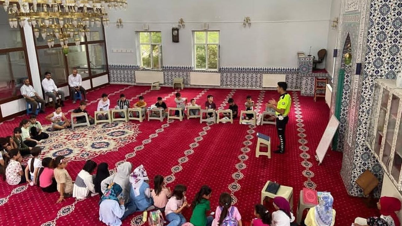 Akyaka İlçe Emniyet Amirliği Trafik Denetleme Büro Amirliği, İstasyon Merkez Camii Yaz Kur’an Kursu’na katılan öğrencilere trafik güvenliği konusunda kapsamlı bir eğitim verildi.