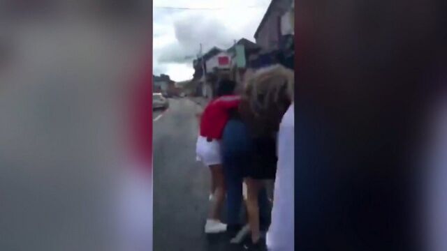 İrlanda'da 14 yaşındaki Müslüman bir kız çocuğu, sokakta yürüdüğü esnada kalabalık bir grubun saldırısına uğradı. Saldırganlar, çocuğu yerde tekmelerken, başörtüsünü çıkarıp yumurta attı. O anları, saldırıya uğrayan kız çocuğu kaydetti.