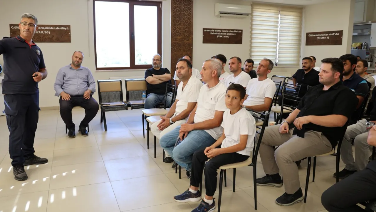 Kent Mezarlığı Hizmet Binası’nda yer alan çok amaçlı salonda gerçekleştirilen eğitimde, Mezarlıklar Şube Müdürlüğü’nde görev yapan tüm personele, olası yangınlara karşı birçok konuda kapsamlı bilgiler verildi. Eğitim kapsamında olası can ve mal kayıplarını en aza indirmek amacıyla teorik olarak yangınla mücadele yöntemleri, yangın anında doğru davranış şekilleri ve itfaiye olay yerine gelene kadar ilk müdahaleyi yapabilme becerilerini kazandırmaya yönelik bilgiler aktarıldı.